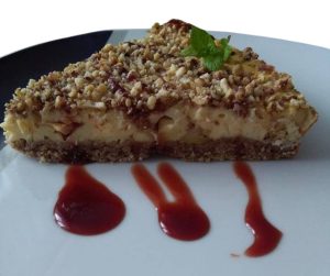 2 hrnky namletých vloček smícháme se lžící holandského kakaa. Mléko smícháme se 3 bílky, lžící kokosového oleje a osladíme třeba medem. Těsto namačkáme do dortové formy. Do další misky dáme zbylé 3 žloutky, 2 tvarohy, pudinkový prášek, rozkrojené jablíčko na malé kostičky a zase ochutíme medem či agáve sirupem. Nalejeme na těsto, nahoru dáme nasekané jakékoli ořechy a dáme péct na 170°. Pečeme tak dlouho, dokud se neupeče tvarohová hmota.